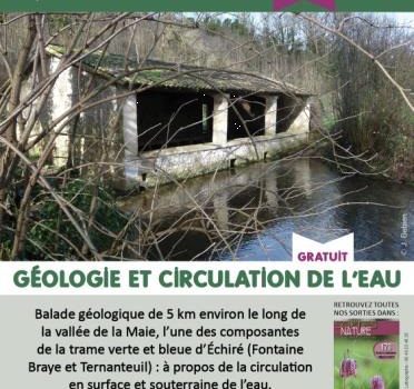 Balade géologique de 5 km environ le long de la vallée de la maie, l’une des composantes de la trame verte et bleue d’echiré (fontaine braye et ternanteuil) : à propos de la circulation en surface et souterraine de l’eau. RDV: 14 h, parking du château du Coudray-Salbart, Echiré