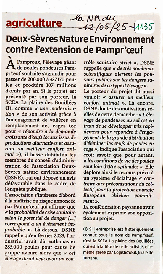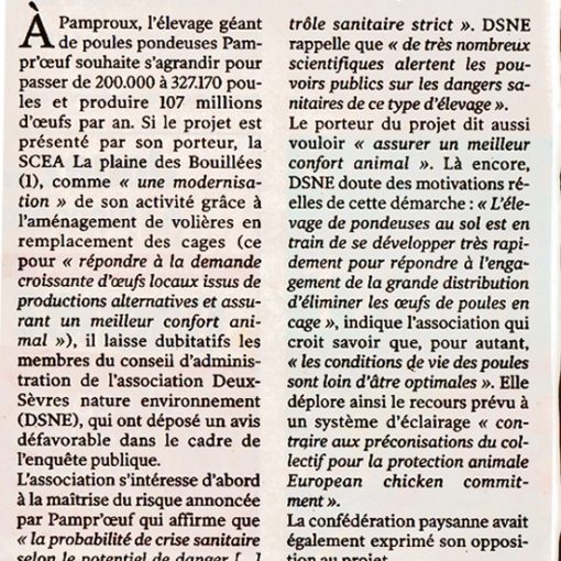 2216 – Deux-Sèvres Nature Environnement contre l’extension de Pampr’oeuf