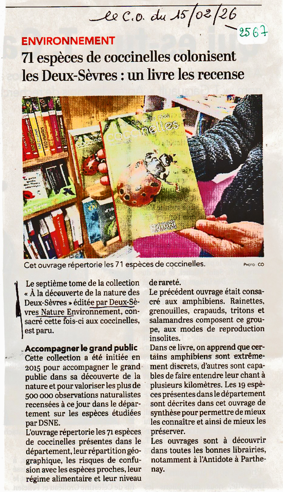 Publié 10 mars 2026 2318 – 71 espèces de coccinelles colonisent les Deux-Sèvres : un livre les recense