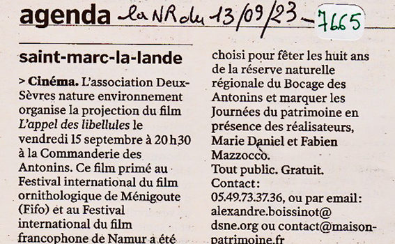 Revue de presse Biodiversité Revue de presse DSNE Revue de presse Sensibiliser par l'échange 1974 – agenda Saint-Marc-la-Lande
