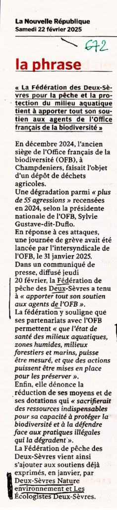 Revue de presse DSNE Revue de presse Environnement 2176 – La phrase de la Fédé de pêche Publié 13 mars 2025