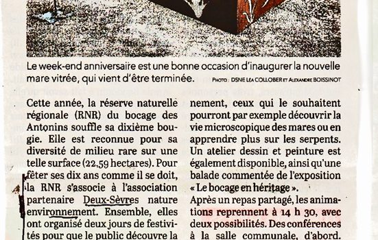 Revue de presse Biodiversité Revue de presse DSNE Revue de presse Environnement Revue de presse Sensibiliser par l'échange 2270 – Le Bocage des Antonins fête ses 10 ans